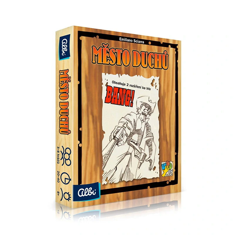 Město duchů je rozšíření ke Hře Bang! Obsahuje 2 rozšíření (v originále vyšla pod názvy Dodge City a High noon) kompletně v českém jazyce. Do hry přichází nové postavy, nové karty a s nimi i nové možnosti.