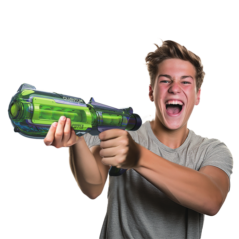 S 12ranným „Quantum Plopperem“ se zábava nabije 12krát - když jsou všechny pěnové kuličky spotřebovány, jednoduše je seberte a zatlačte zpět předním otvorem pistole pro opětovné nabití a zábava pokračuje!
