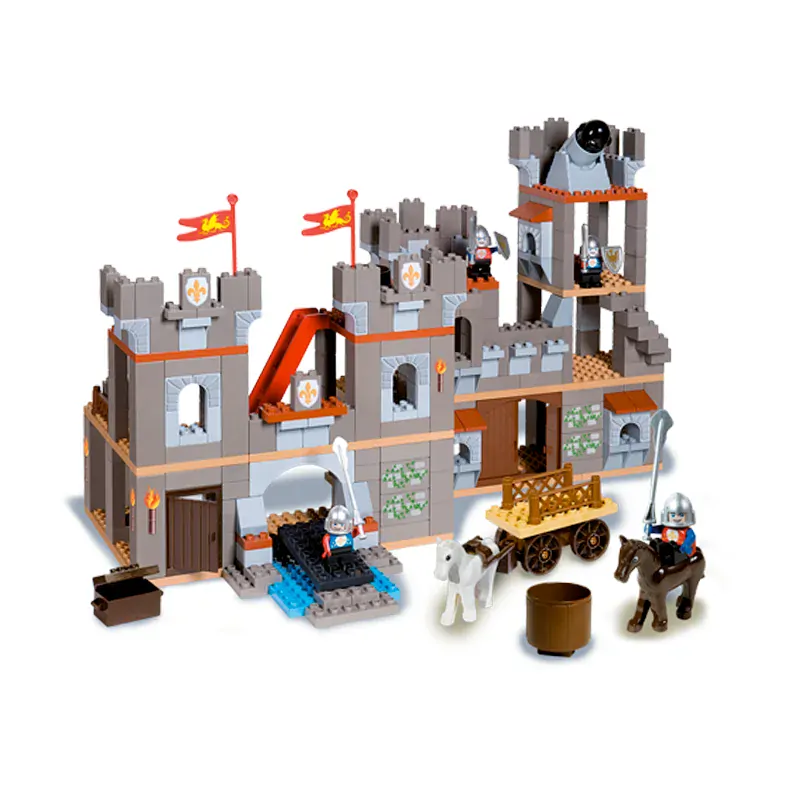 VELKÝ STŘEDOVĚKÝ HRAD - 353 velkých kompatibilních kostek a 6 atraktivních figurek rytířů a koňů.